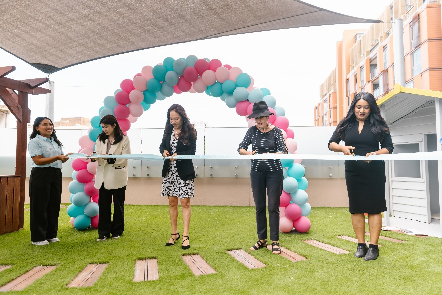 伊顿善育董事长兼CEO王伟(右三)及悉尼市市长Clover Moore(右二)等为新园开园剪彩