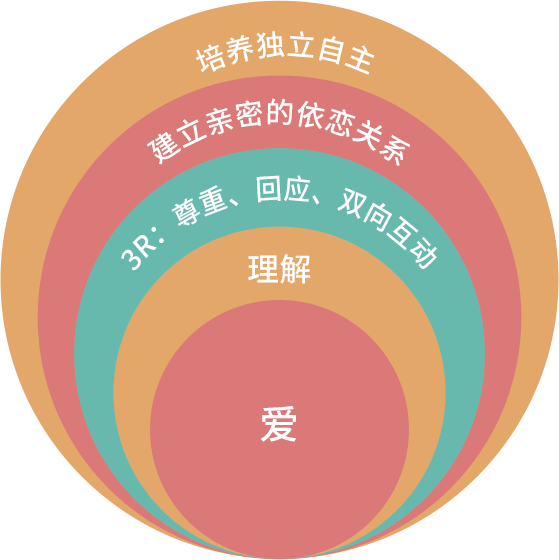 3R,尊重、回应、双向互动的沟通方式,把教育融入在日常生活中,培养孩子的社交能力、动手能力等方面。